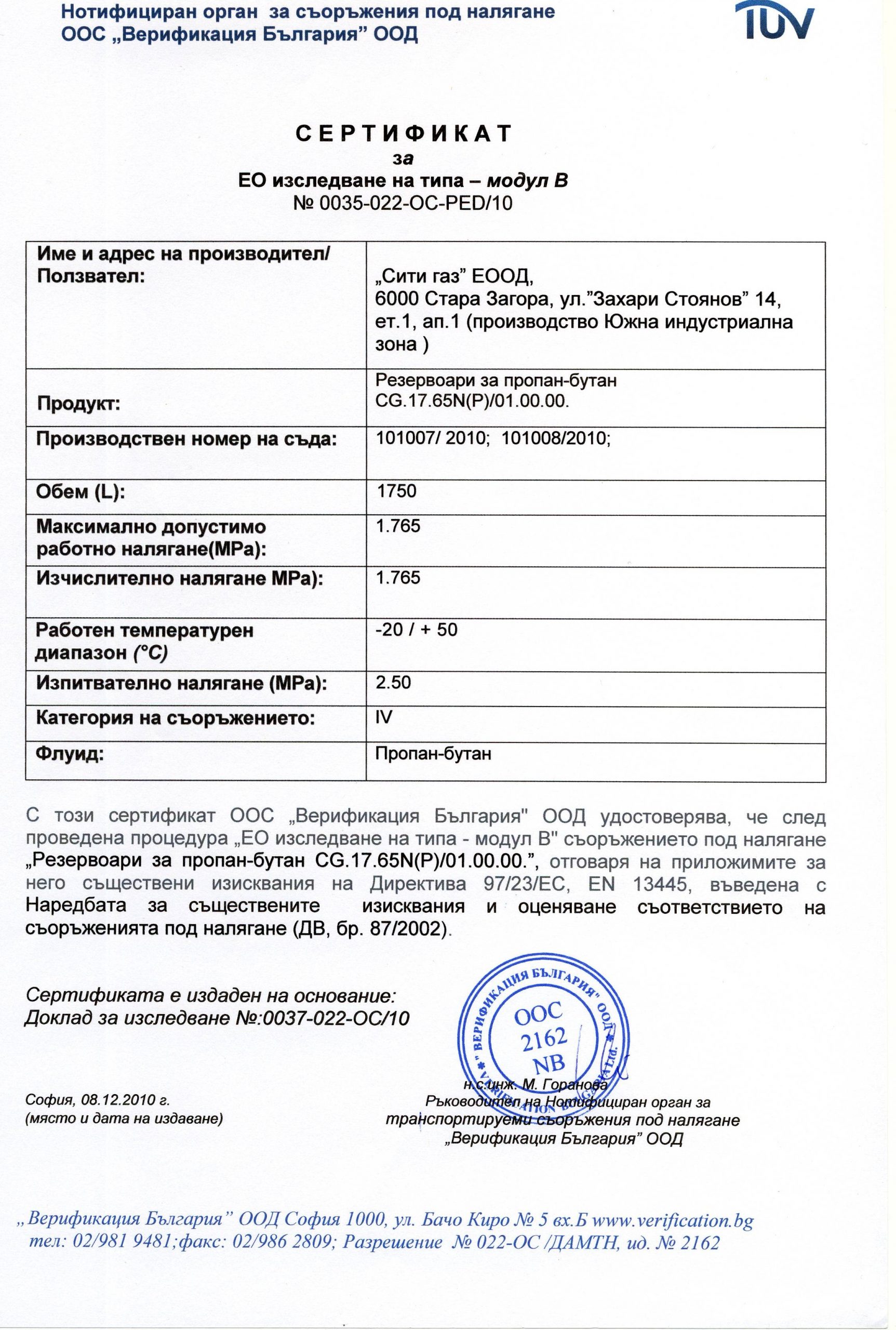 Engineering company „CITY-GAS“ Ltd. is a company with the object of design, development and production of tanks for storage of liquefied gas LPG, in accordance with the requirements of European Directive 97/23.